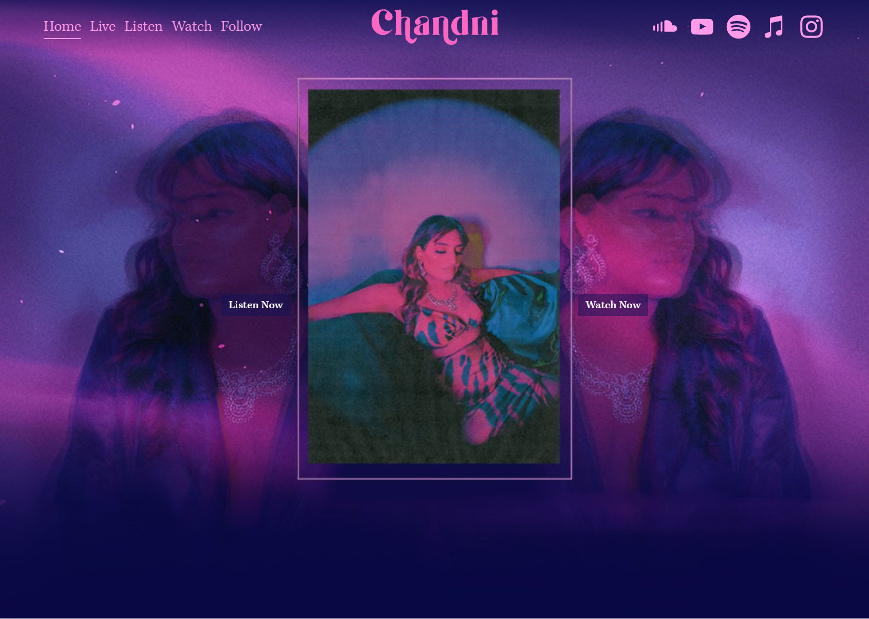 After landscape research and reviewing Chandni’s content, we decided that the pages to include on the website were releases, music streaming sites, YouTube videos and upcoming shows.Call to Action buttons