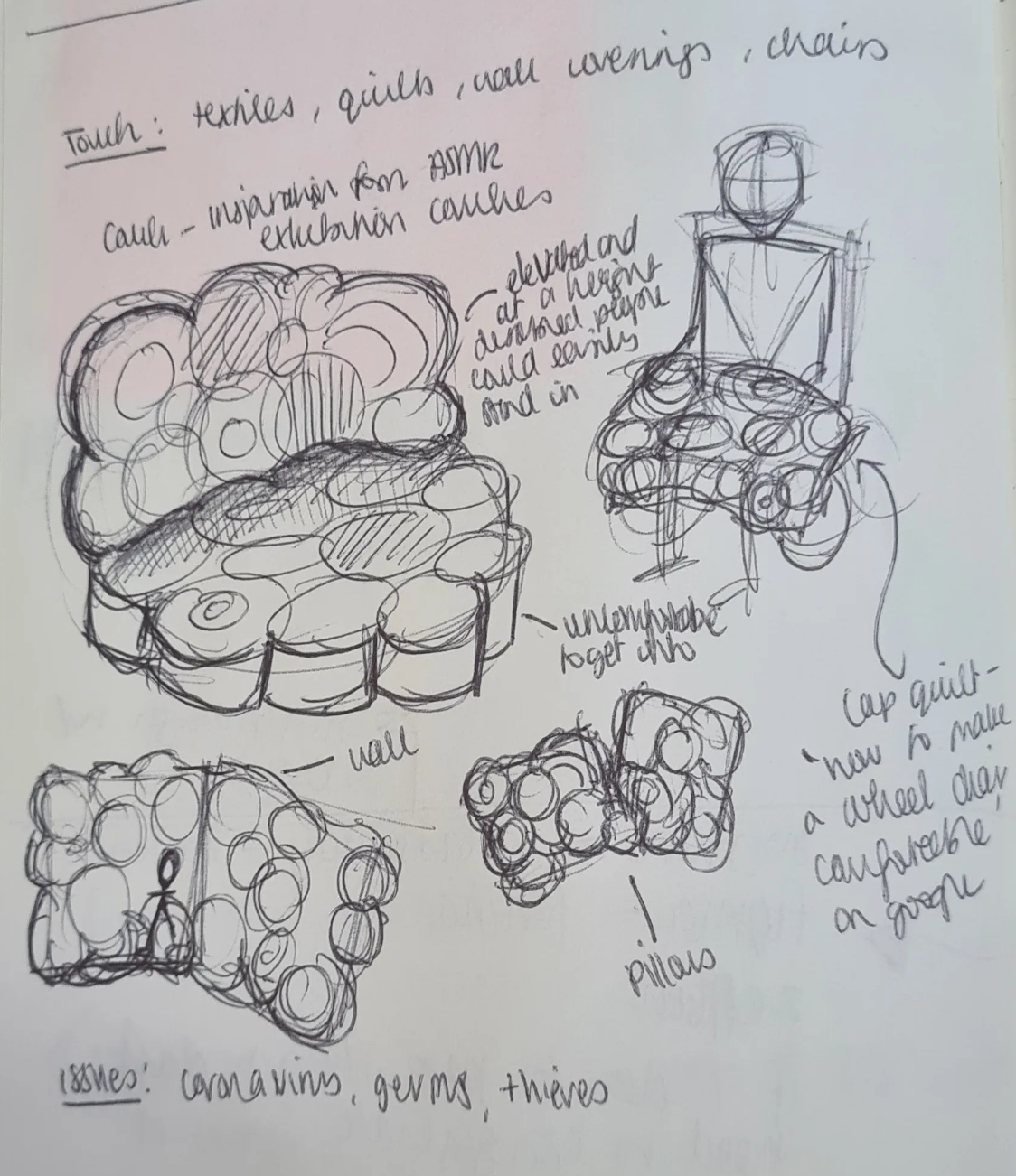 Touch: The movement was first seen when Sonia Delaunay created a quilt for her child- we would be able to use soft fabrics inspired by the work that audiences could be seated on.