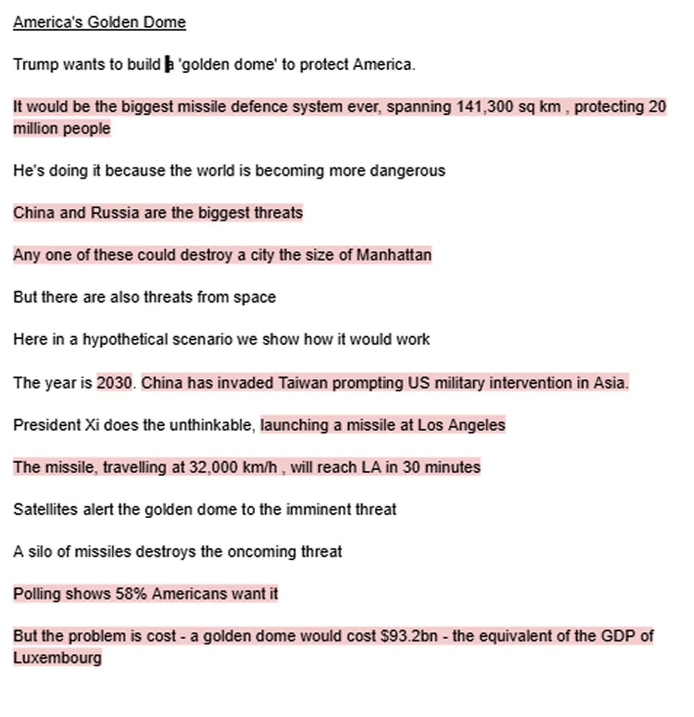 To transform a hypothetical text brief focused on a fictional "Golden Dome" missile defense system” into a compelling, interactive, and visually striking web experience.